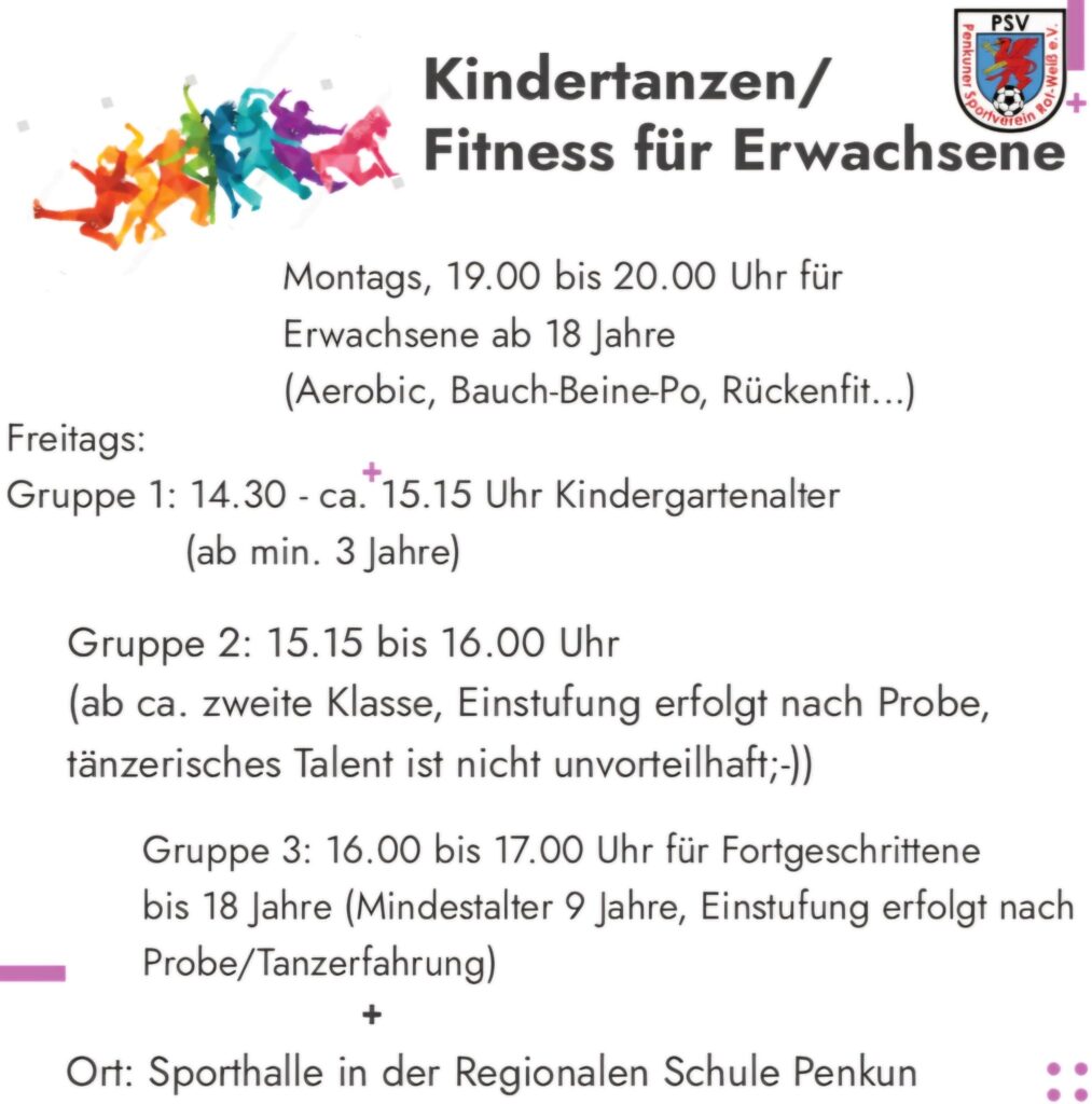 Tanzfitness für Erwachsene? Übungen für Bauch-Beine-Po, Übungen gegen Verspannungen (z. B. Schulter, Rücken), Cardiotraining, kleine Choreografien u. a. aus dem Bereich Dancefitness.